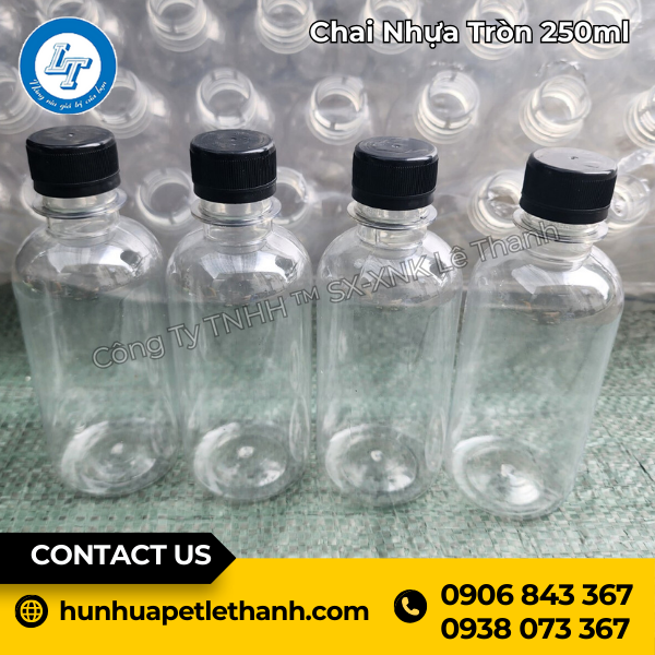 Chỉ cần bạn liên hệ, Lê Thanh luôn sẵn sàng đáp ứng! Để nhận báo giá và đặt mua chai nhựa tròn 250ml, bạn có thể gọi trực tiếp công ty qua Hotline 0938 543 050 - 0938 073 367 hoặc đến điểm bán ở địa chỉ D15/26/1A đường Võ Văn Vân, ấp 4B, xã Vĩnh Lộc B, huyện Bình Chánh, HCM.