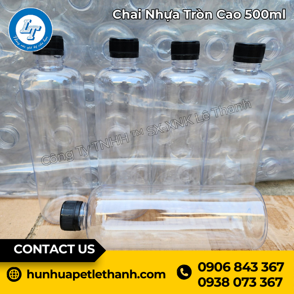 Với chất lượng tốt, mẫu mã đẹp, giá thành rẻ, chai nhựa tròn 500ml ngày càng được nhiều khách hàng tìm mua. Các đại lý bán lẻ chai nhựa hoặc xưởng sản xuất cần số lượng lớn hãy đến với Lê Thanh để mua sỉ chai nhựa 500ml tròn đựng nước ép chất lượng, giá cả hợp lý.