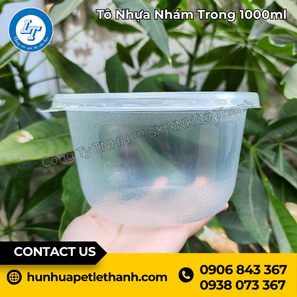 Hãy trải nghiệm sản phẩm tô nhựa nhám trong suốt giá rẻ có nắp 1000ml để biết rằng chúng tôi có phải là nhà cung cấp mà bạn đang tìm kiếm hay không. Nhắn tin qua zalo hoặc gọi Lê Thanh qua hotline để được tư vấn về bảng giá cũng như cách thức đặt hàng.