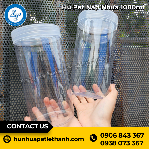 Hũ nhựa PET 1000ml có nhiều kích thước khác nhau như: 250ml, 500ml, 700ml, 750ml, 900ml, 1000ml, 1200ml, 1500ml.