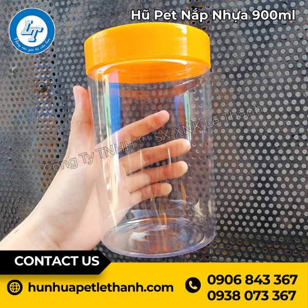 Hũ PET nắp nhựa 900ml là một loại bao bì được làm từ nhựa PET (Polyethylene Terephthalate) với nắp đậy được làm từ nhựa đủ màu khác nhau như: đen, đỏ, trắng trong. Trắng đục, nâu, hồng, xanh…