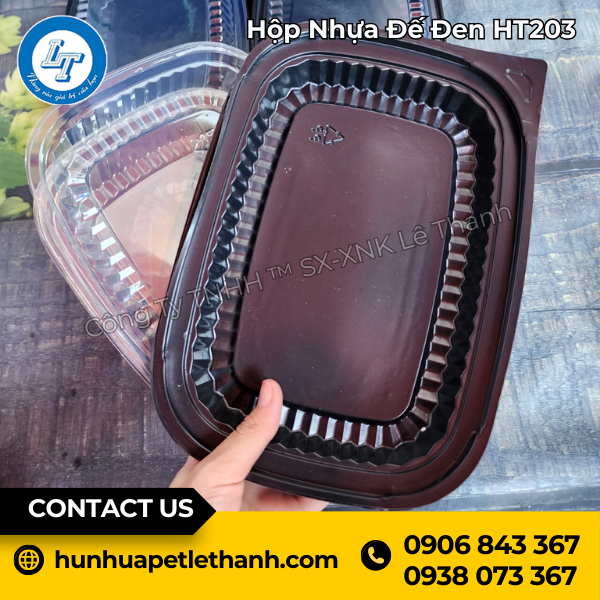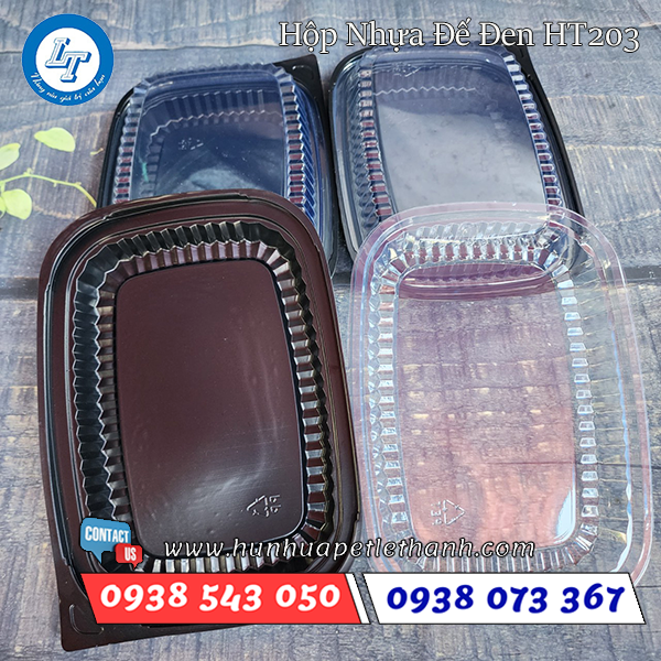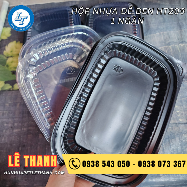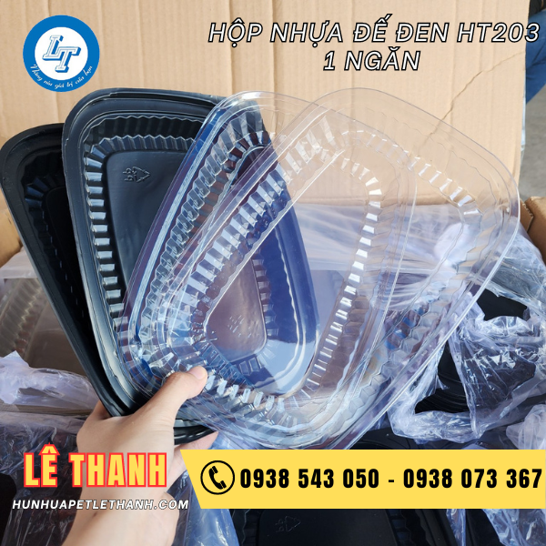 Liên hệ chúng tôi tư vấn hộp nhựa đế đen HT203 1 ngăn đủ bộ số lượng khách cần, hân hanh được phục vụ và hợp tác với các bạn.